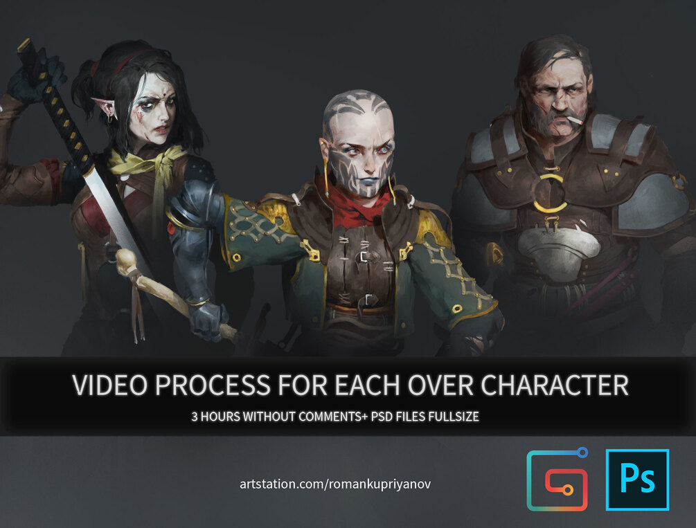 Photoshop painting, SpeedPaint 3 concepts / рисование персонажей